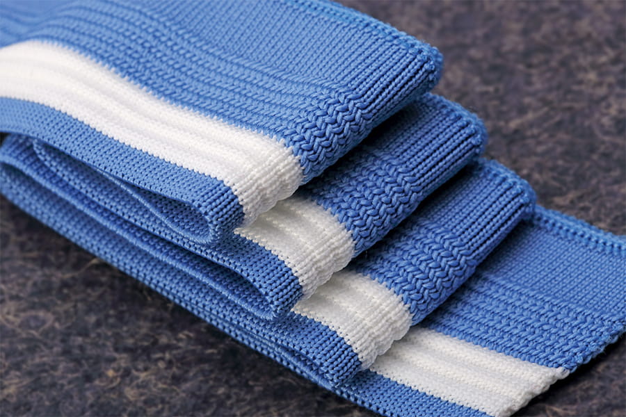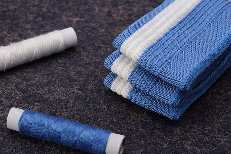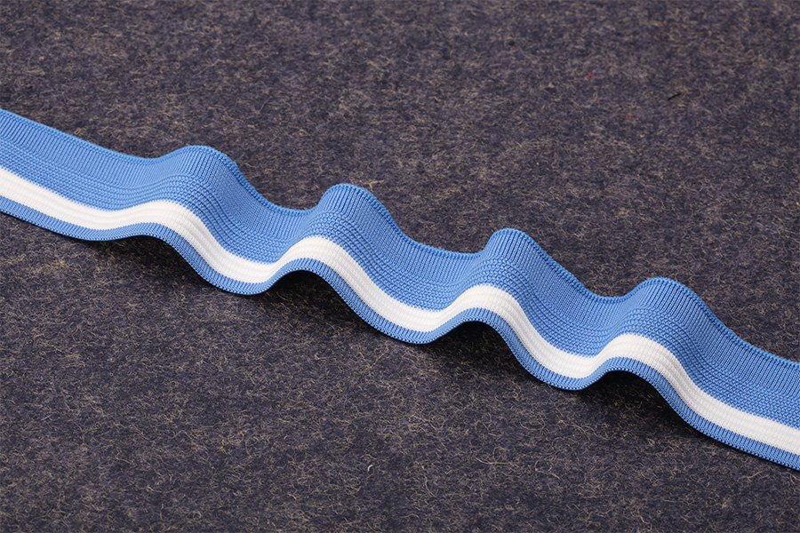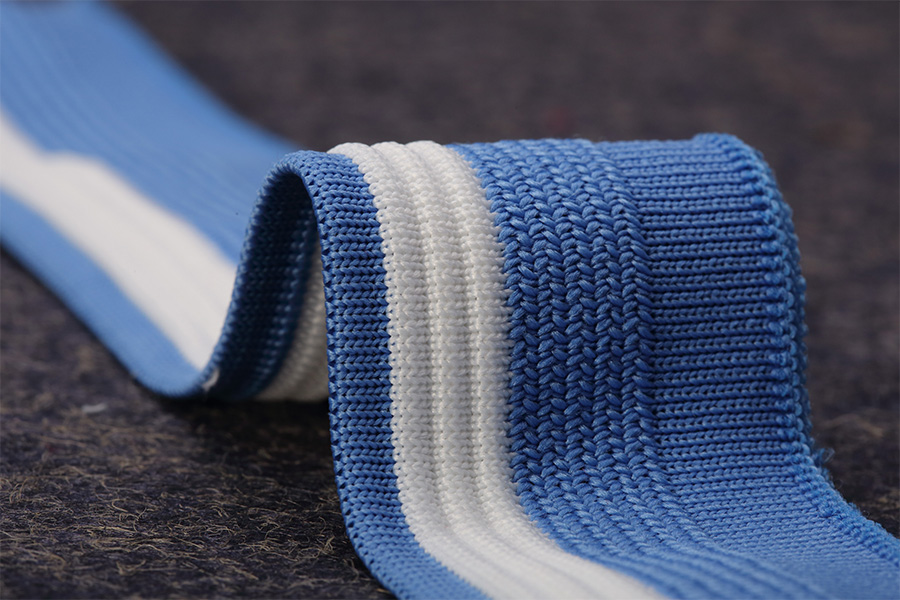 Вязание: Текстурированная акриловая пряжа затем подается в вязальные машины, где из нее вяжется ребристое полотно. Вязальные машины настроены на получение характерного ребристого узора, который состоит из чередующихся приподнятых и опущенных рядов петель. Конкретная конфигурация вязальных машин определяет ширину и дизайн резинки.